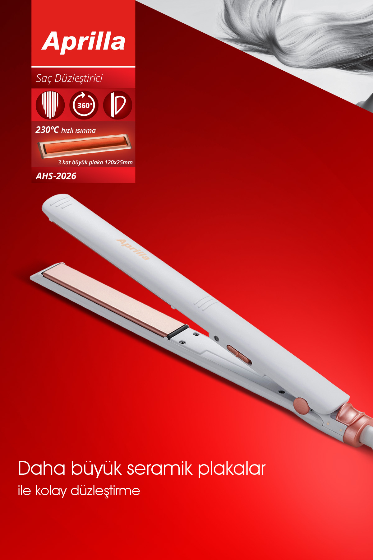 Seramik plaka teknolojisi sayesinde saçlarınıza eşit ısı dağılımı sağlayarak, daha az hasarla düzleştirme işlemi gerçekleştirir; - Plaka tipi tasarımı ile kolay ve pratik kullanım imkanı sunar; istediğiniz zaman hızlıca şekillendirme yapabilirsiniz; - 230 dereceye kadar ısıtma kapasitesiyle, farklı saç tiplerine uygun sıcaklık ayarı yaparak istediğiniz stili kolayca elde edebilirsiniz;