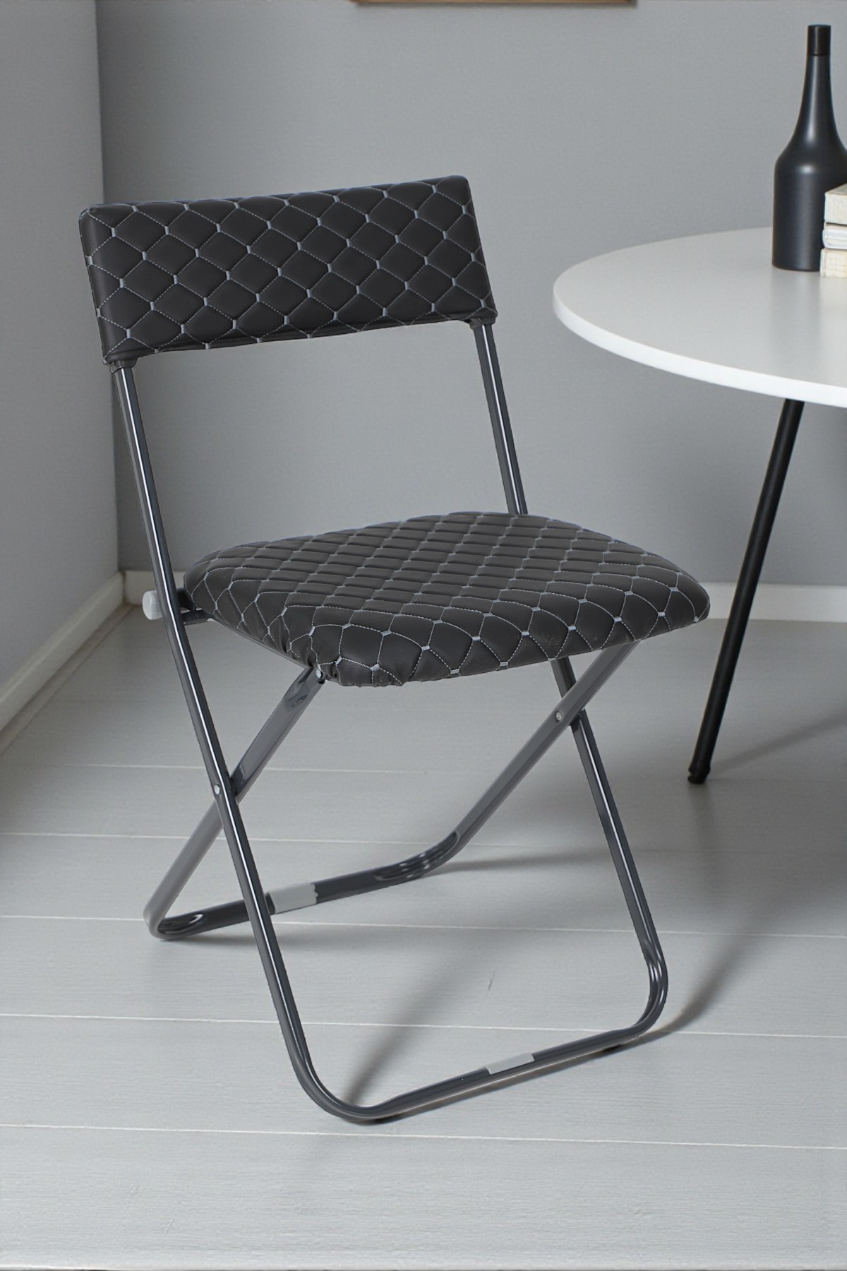 İronika Anatolia Metal Gövdeli Deri Kapitone Sandalye Katlanır Mutfak Bahçe Sandalyesi Siyah