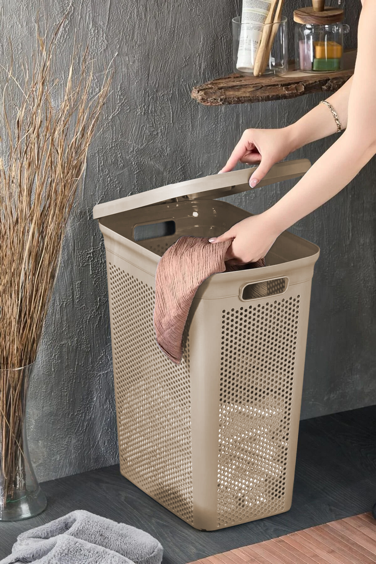 • Kapaklı yapı: Kapaklı çamaşır sepeti modeli, kötü kokuların yayılmasını engeller ve hijyenik bir kullanım sunar.
