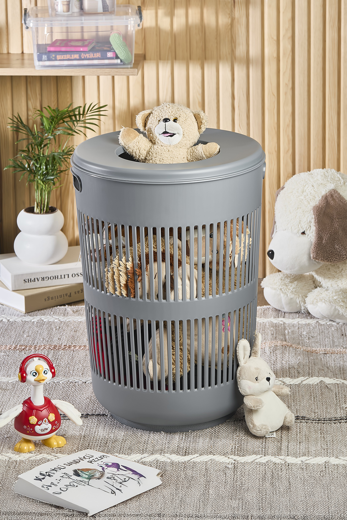 60 Litre Kapasite: Geniş hacmi ile biriken kirli çamaşırlarınızı toplamak için ideal. Evde veya çocuk odasında oyuncak sepeti olarak da kullanılabilir.