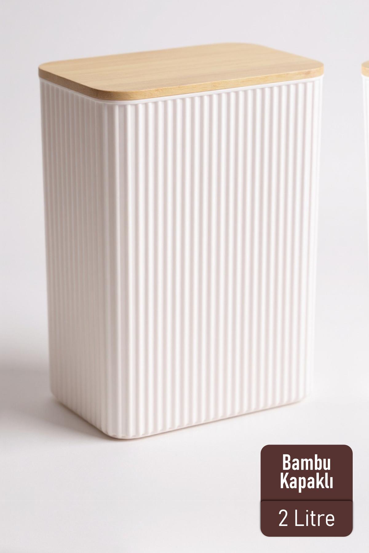 İronika 2 Litre Bambu Kapaklı Erzak Gıda Saklama Kabı, mutfağınızda düzeni ve zarafeti bir arada sunar.