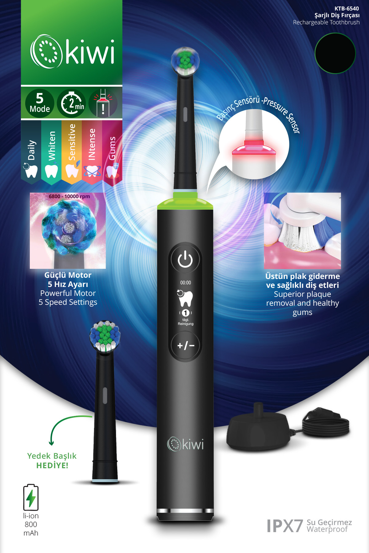 Kiwi KTB-6540 Şarjlı Diş Fırçası | 5 Farklı Mod & LCD Ekran Siyah