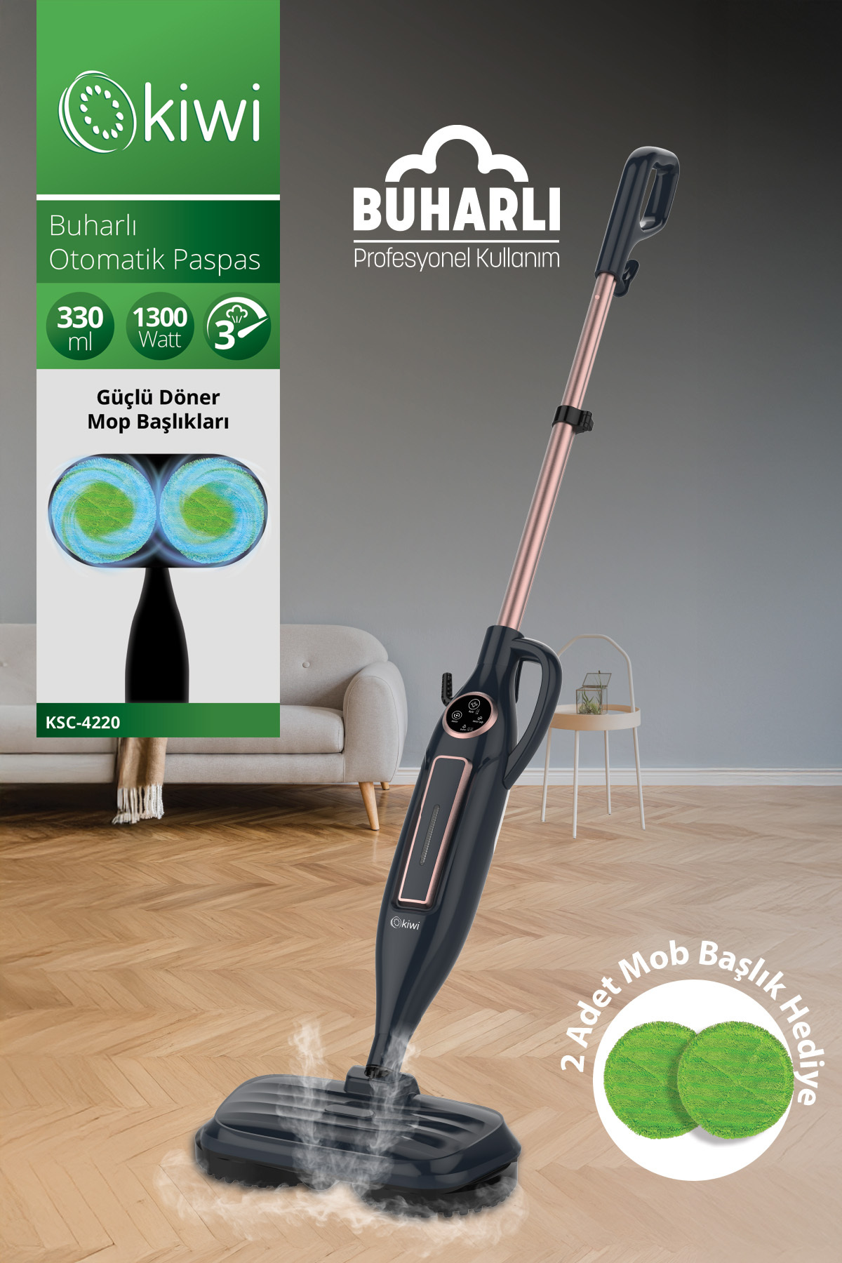 Ksc-4220 Çok Fonksiyonlu Ayarlanabilir Seviyeli 10 Aparatlı Dikey Buharlı Mop - Buharlı Temizleyici